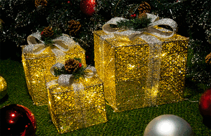 Новогодняя композиция "Подарки" Золотистые. Мерцающие. теперь