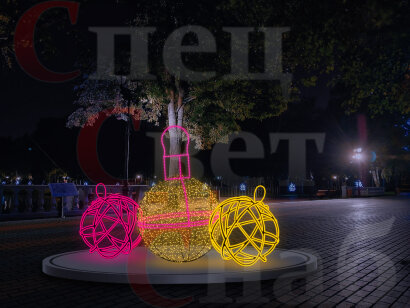 Главная » Светодиодные композиции » Новогодние композиции » Новогодняя композиция "Разноцветные елочные шары" 2
